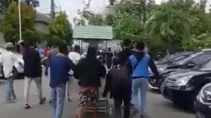 Sedangkan dalam video yang beredar di media sosial, tampak massa menumpuk di depan pintu salah satu ruangan di rumah sakit. Masa berteriak memaksa menerobos pintu.
