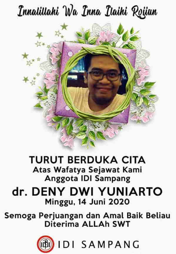 Joni menyebut, dokter Deny meninggal dalam status positif COVID-19. Sementara mertuanya yang juga tenaga kesehatan dinyatakan meninggal berstatus COVID-19. Bapak mertua Deny diketahui seorang perawat dan ibu mertua Deny berprofesi bidan.