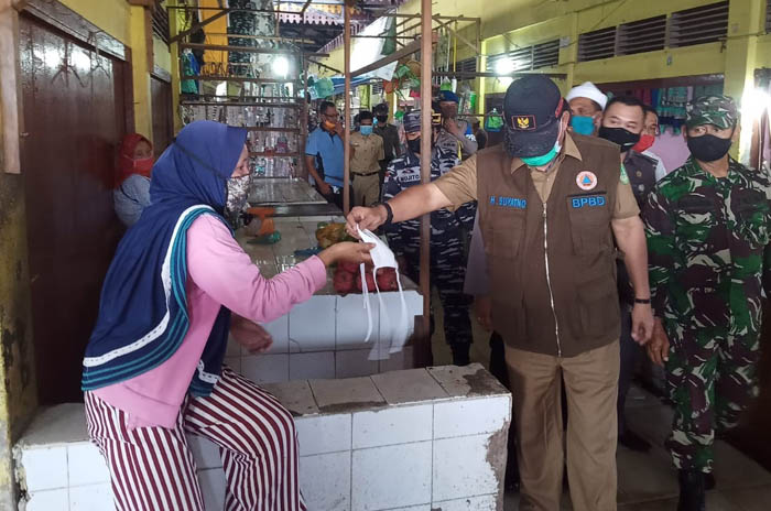 Selain melakukan rapid test, melalui kegiatan bakti kesehatan yang digelar, Selasa (16/6/2020) di depan Pasar Datuk Rubiah tersebut juga dilakukan pembagian masker kepada pedagang dan pembeli.
