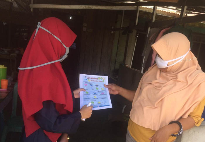 “Saya membuat hand sanitizer herbal dari daun sirih dan jeruk nipis dikarenakan bahan-bahannya sangat mudah didapatkan di Desa Pekan Kamis. Saya juga membuat poster cara membuat hand sanitizer herbal tersebut sehingga masyarakat dapat membuat sendiri di rumah,” ungkap Vina sambil menunjukkan poster yang telah dibuatnya.