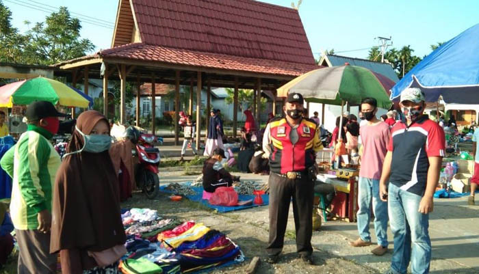 Mahasiswi Unri ini juga ikut serta melakukan sosialisasi mengenai disiplin protokol kesehatan di Pasar Desa Pekan Kamis yang kembali dibuka setelah beberapa waktu sempat ditutup. Kegiatan tersebut dilakukan bersama Koramil 01 Tembilahan dipimpin oleh Pjs Danramil yang diwakili oleh Serma Indra Mukri.