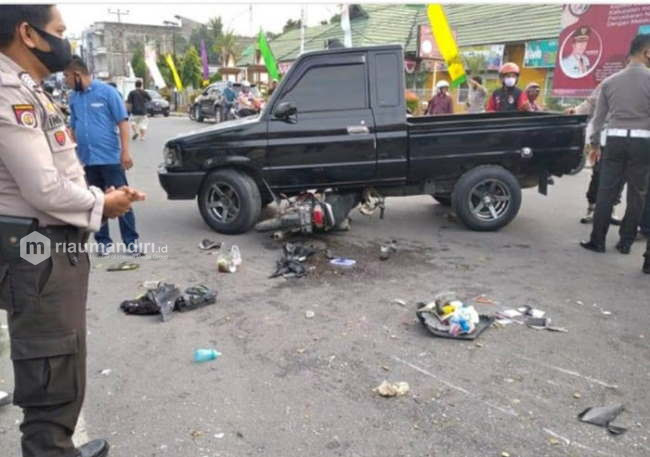 Ngebut di Jalanan, Pesepeda Motor Tabrak Mobil Pick-up hingga Masuk Kolong