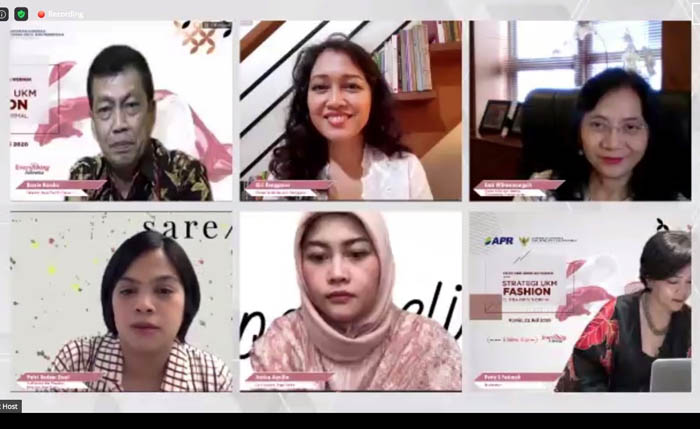 Dalam webinar kali ini, tiga UKM fashion membagikan pengalaman dan strategi pemasaran produk selama masa pandemi. Ketiga pelaku fashion tersebut yaitu Owner Indische Riri Rengganis, Co-founder dan Creative Director Sare Studio Putri Andamdewi dan Co-Founder Tepa Selira Astika Aquilla.