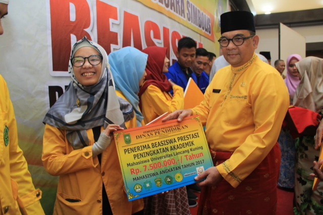 Mahasiswa Unilak menerima beasiswa dari Pemprov Riau yang diserahkan langsung oleh Wakil Gubernur Riau Edy Natar Nasution pada Jumat 13 Desember 2019 lalu.