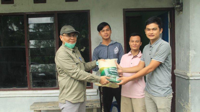 Rektor Unilak Dr. Junaidi menyerahkan paket sembako kepada mahasiswa di Pekanbaru.