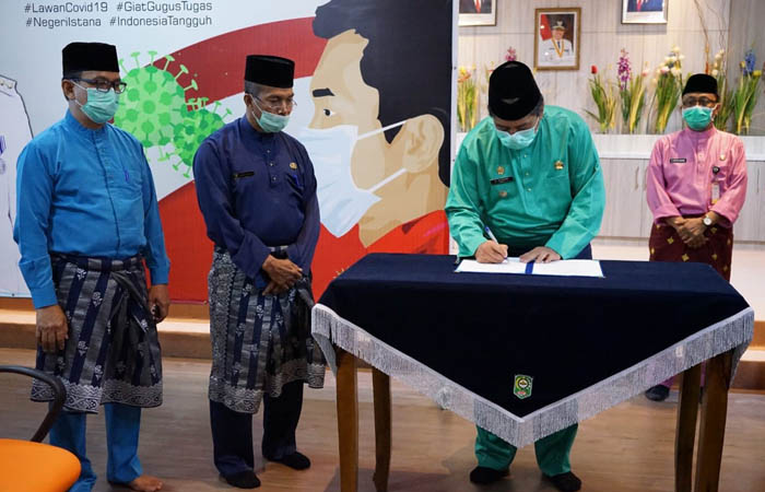 Kemudian, acara di lanjutkan dengan penandatanganan persetujuan bersama Bupati dengan Pimpinan DPRD Kabupaten Siak atas Ranperda tentang Pertanggungjawaban Pelaksanaan APBD Kabupaten Siak Tahun Anggaran 2019, untuk di jadikan Peraturan Daerah.