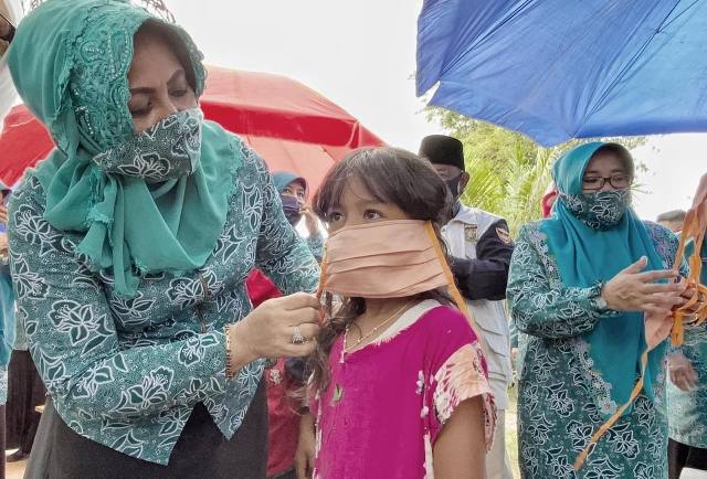 Bagikan 10 Ribu Masker di Kampar, Ketua PKK Riau Misnarni Langsung Edukasi Warga