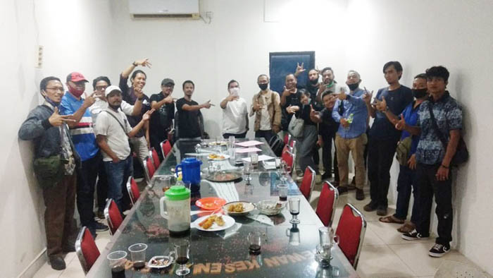 Dalam pertemuan tersebut kedua pengurus lembaga kesenian itu terlihat akrab, santai, dan penuh rasa kekeluargaan sambil ngopi dan makan goreng.