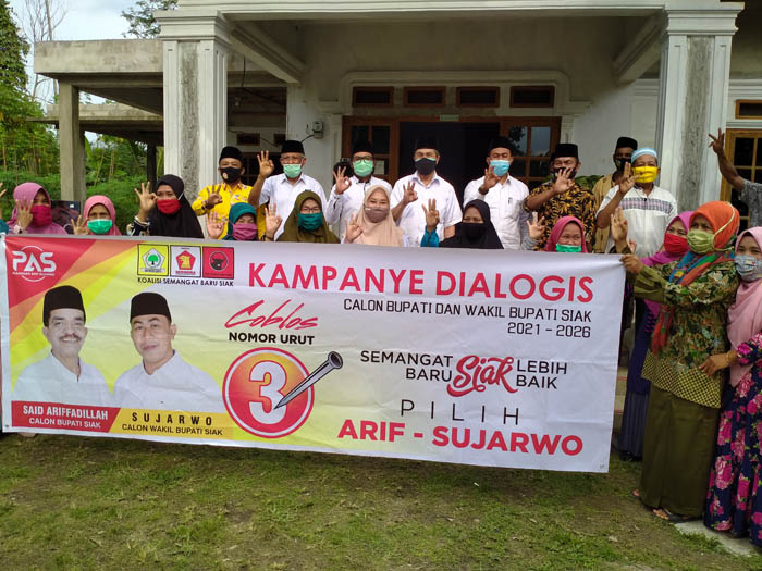 Kampanye calon dengan nomor urut 3 ini dihadiri oleh Ketua DPD I Golkar Riau H. Syamsuar, mantan Gubernur Riau Wan Abubakar, Ketua DPD II Golkar Siak Indra Gunawan, Ketua DPC Gerindra Siak Sutarno, Ketua DPRD Siak Azmi, Ketua PDI Perjuangan Siak H. Syahrul, Ahad (4/10/2020).