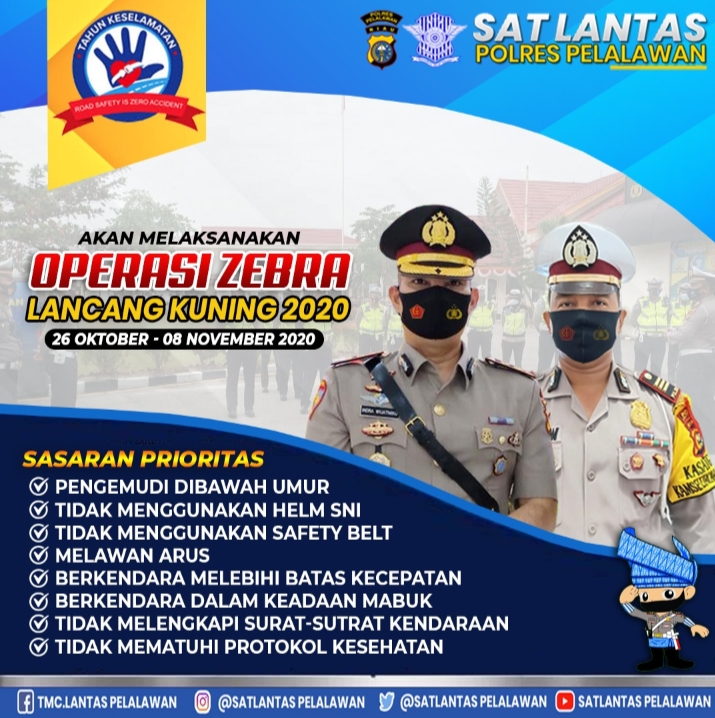 RIAUMANDIRI.ID, PANGKALAN KERINCI - Polres Pelalawan melaksanakan Operasi Zebra Lancang Kuning Tahun 2020 yang akan berlangsung selama 14 hari, dimulai tanggal 26 Oktober hingga 8 November 2020.