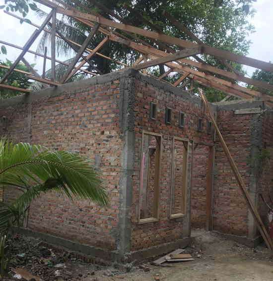Bantuan rumah BSPS dari Kementerian PUPR sedang dibangun di atas tanah milik Supriadi. Posisi bangunan berada di belakang garasi mobil sang Ketua RT.
