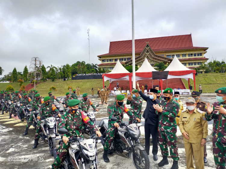 RIAUMANDIRI.ID, Pangkalan Kerinci - Pemerintah Kabupaten (Pemkab) Pelalawan, Riau, memberikan bantuan hibah berupa 110 unit kendaraan roda dua merek Suzuki Bandit GSX-150 dalam rangka penugasan pengamanan Pemilihan Kepala Daerah (Pilkada) Tahun 2020, bertempat di Halaman Kantor Bupati, Senin (9/11/2020) pagi.