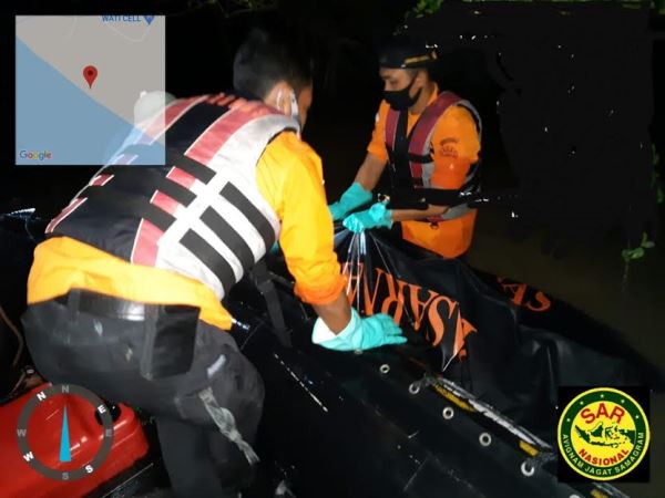 Korban ditemukan 4 NM atau 7 KM ke arah hulu dari lokasi kejadian.
