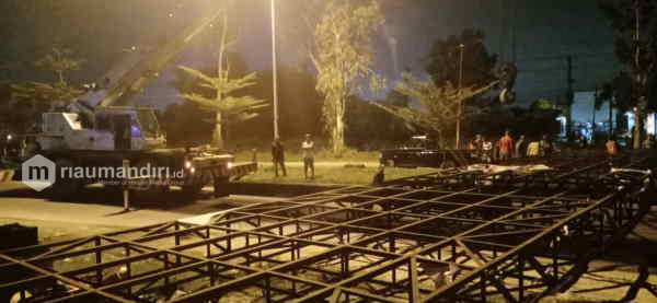 Bando Ilegal di Jalan Soekarno Hatta Pekanbaru Ditebang