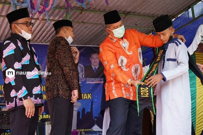 RIAUMANDIRI.CO, SIAK - Bupati Siak Alfedri mewisuda 45 santriwan dan santriwati Pondok Pesantren Amanah Tarbiyah Islamiyah (PP-AMTI), di Kampung Rempak, Kecamatan Sabak Auh, Sabtu (10/4/2021).