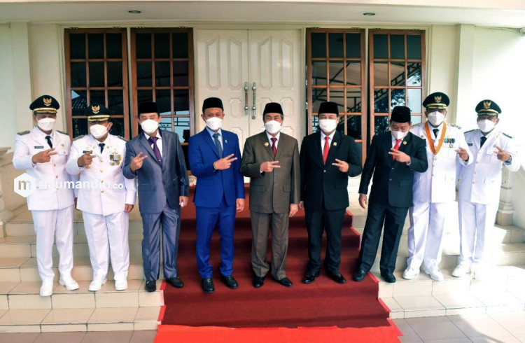 Ketua DPRD Provinsi Riau, Yulisman bersama Wakil Ketua DPRD Provinsi Riau lainnya yakni Syafaruddin Poti, Agung Nugroho dan Hardianto hadir langsung menyaksikan pengambilan sumpah dan pelantikannya kedua pasangan kepala daerah tersebut oleh Gubernur Riau Syamsuar.