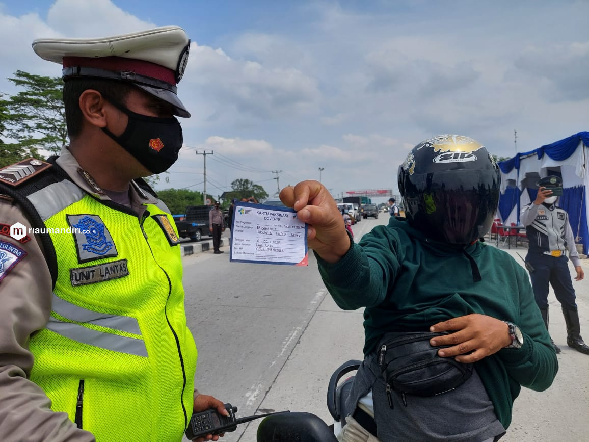 RIAUMANDIRI.CO, PEKANBARU - Penyekatan yang dilakukan di sejumlah titik di jalan Pekanbaru dalam rangka Penerapan Pembatasan Kegiatan Masyarakat (PPKM) level 4 yang berlaku mulai Senin (26/7) hingga (2/8) menuai kritik dari masyarakat. Hal itu karena saat ingin melintasi penyekatan, warga harus harus menunjukkan kartu vaksinasi.