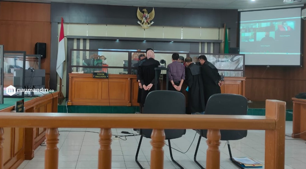 Arif Budiman memberikan kesaksian untuk terdakwa Indra Osmer Gunawan Hutahuruk yang mengikuti proses sidang dari sel tahanan Mapolda Riau secara virtual. Dia merupakan mantan Manager Bisnis Consumer (MBC) BJB Pekanbaru.