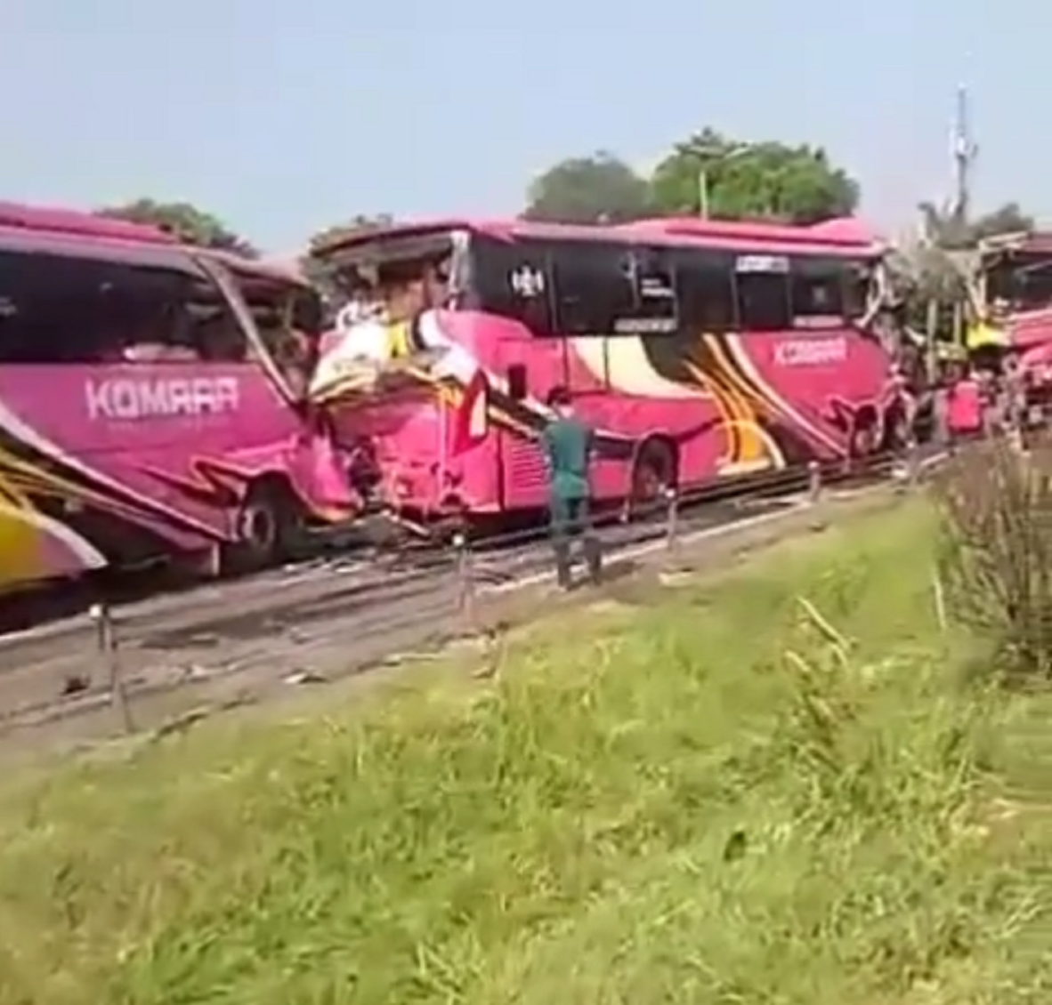 Tabrakan Beruntun 10 Bus Komara yang Bawa Peziarah, 1 Tewas, 19 Luka-Luka