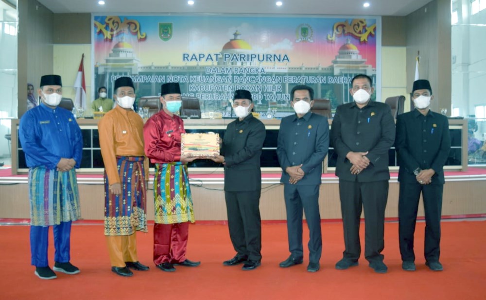 Kemudian terangnya sesuai pasal 317 (1) dijelaskan bahwa kepala daerah mengajukan ranperda tentang perubahan APBD disertai penjelasan dan dokumen pendukung kepada DPRD untuk memperoleh persetujuan bersama. Kegiatan selanjutnya Bupati Rohil menyampaikan nota keuangan ranperda tentang perubahan APBD Rohil 2021 secara resmi.