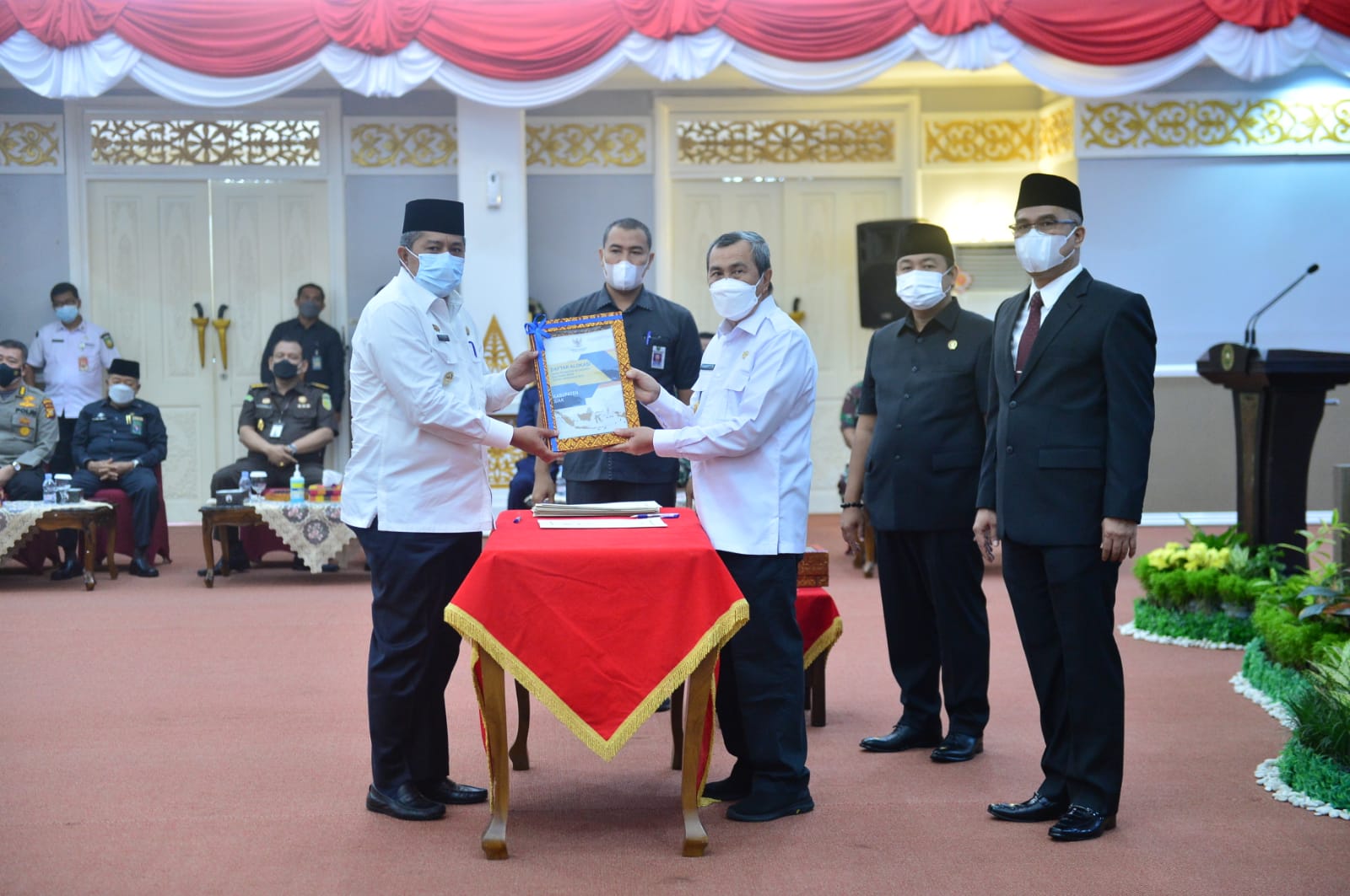 Penyerahan DIPA, BDAT dan DD tersebut diserahkan langsung oleh Gubernur Riau, Syamsuar. Rabu (1/12/2021).