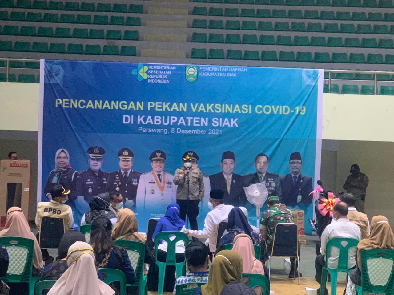RIAUMANDIRI.CO - Terhitung Rabu (8/12/2021) hingga sepekan ke depan, Pemkab Siak bersama TNI-Polri menggelar Pekan Vaksinasi Massal di GOR Kecamatan Tualang.