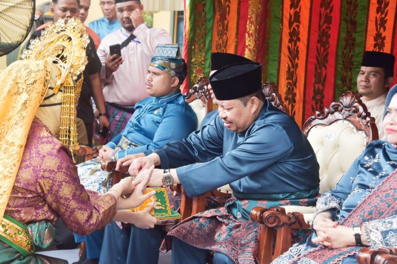 Bupati Bengkalis Ke-14 Amril Mukminin disuguhkan tepak sirih.
