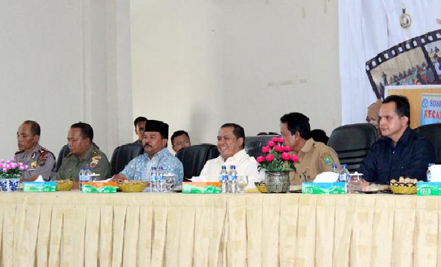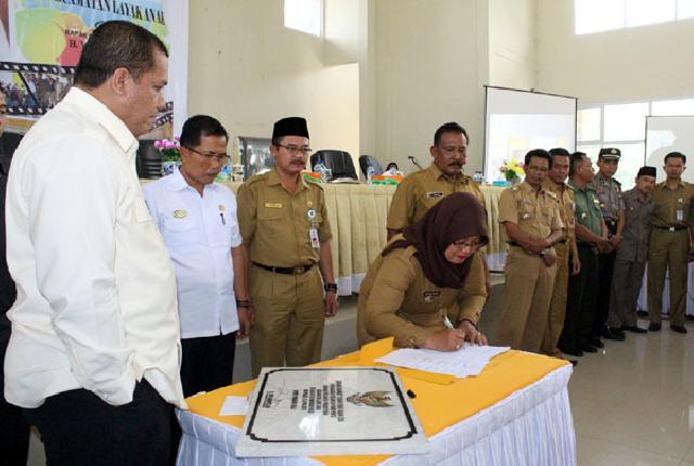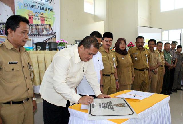Bupati Inhu H Yopi Arianto, SE menyaksikan penandatanganan MoU antara dinas dan intansi terkait dalam rangka menuju Indragiri Hulu sebagai Kabupaten Layak Anak.