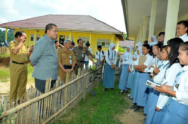Bupati Inhu H Yopi Arianato, SE berbincang dengan siswi SMAN 1 Batang Gansal yang telah selesai melaksanakan UN.