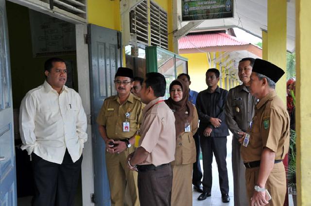 Bupati Inhu H Yopi Arianto, SE saat meninjau pelaksanaan UN di SMAN 1 Sungai Lala.
