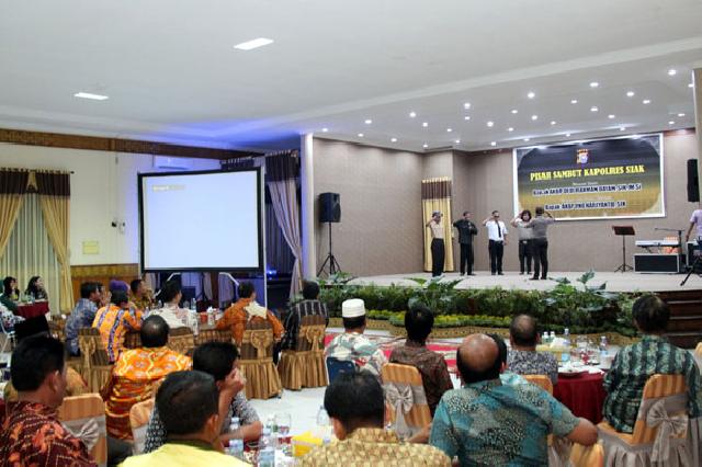 Kapolres Siak yang baru, AKBP Ino Haryanto memberikan sambutan dan mohon dukungan dari semua pihak dalam tugasnya memimpin Polres Siak