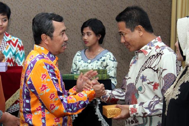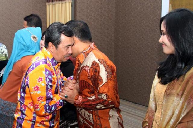 Bupati Siak H Syamsuar memberikan selamat dan ucapan selamat datang kepada Kapolres Siak yang baru AKBP Ino Haryanto.