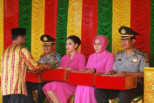Kapolres Siak menerima tepung tawar dalam pisah sambut.