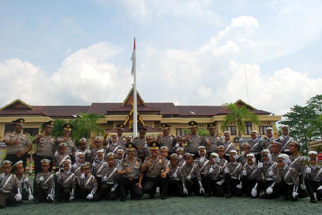 Kapolres Siak AKBP Dedi Rahman Dayan dan AKBP Ino Haryanto bersama jajarannya di Mapolres Siak.