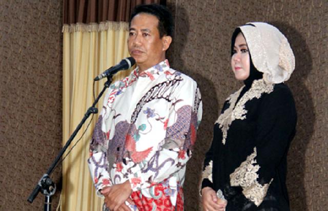 Kapolres Siak AKBP Dedi Rahman Dayan dan pejabat baru Kapolres Siak AKBP Ino Haryanto beserta istri dalam acara pisah sambut dan sertijab.
