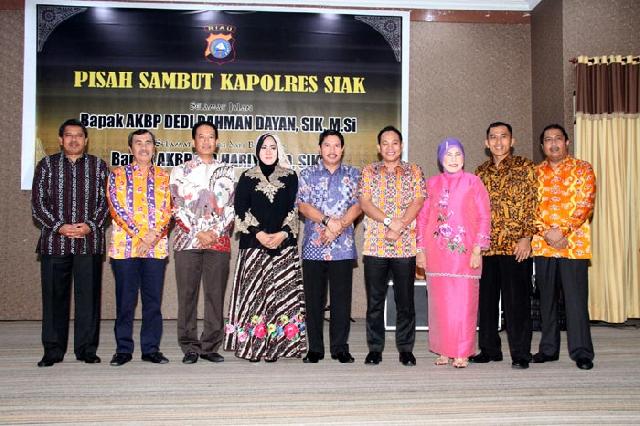 Bupati Siak H Syamsuar memberikan salam perpisahan kepada mantan Kapolres Siak AKBP Dedi Rahman Dayan yang pindah tugas ke Mabes Polri.