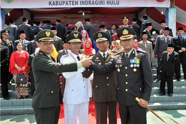 Salam Komando Pj Bupati Inhu Kasiarudin dengan Kejari Rengat Teuku Rahman, Dandim 0302 Inhu Letkol Edinson S, Kapolres Inhu AKBP Ari Wibowo.