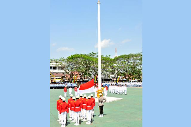 Prosesi pengibaran bendera.