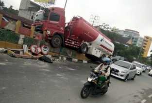 Ini Alasan Sopir Terpaksa Banting Stir Hingga Truk Panjat Pembatas Flyover di Pekanbaru