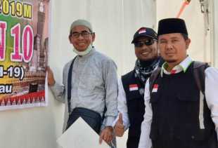 Persiapan Wukuf, Bupati Kuansing dan Tim TPHD Pasang Spanduk di Arafah dan Mina