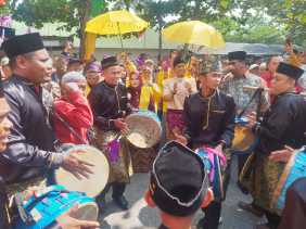Riaumandiri.co - Masyarakat dan iring-iringan tukang becak mengantarkan Pasangan Haji.