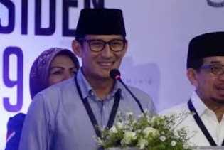 RIAUMANDIRI.CO, JAKARTA - Cawapres Prabowo Subianto, Sandiaga Uno, mengenakan ke.