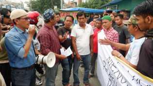 RIAUMANDIRI.ID, MEDAN - Sekelompok orang berunjuk rasa di sekitar Tempat Pemakam.