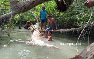 Nelayan Karimun Temukan Ikan Paus Mati Seberat 700 Kg Tersangkut di Bakau
