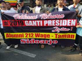 RIAUMANDIRI.CO, SURABAYA - Massa #2019GantiPresiden menuding aparat penegak huku.