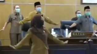 Aksi Anggota DPRD Sidoarjo Joget Penguin Sebelum Rapat. Alasannya Cegah Corona