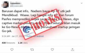 (Hoaks) Nadiem Makarim Bayar Rp6 Triliun Demi Jadi Mendikbud