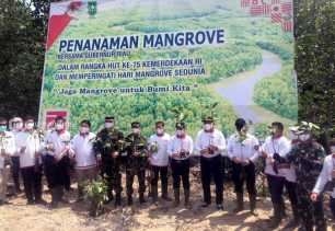 Eksploitasi Sebabkan Abrasi, Gubri Bersama Kapolda Tanam Mangrove di Dumai