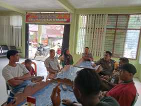 Riaumandiri.co - Bhabinkmatibmas Empat Balai Bripka Syamsul Bahri duduk dan berbincang san.