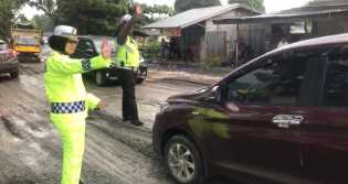 Pastikan Pengiriman Logistik Pemilu Aman, Satlantas Polres Kampar Gerak Cepat Perbaiki Jalan di KM 3